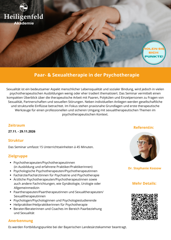 Wochenendseminar Paar- und Sexualtherapie in der Psychotherapie